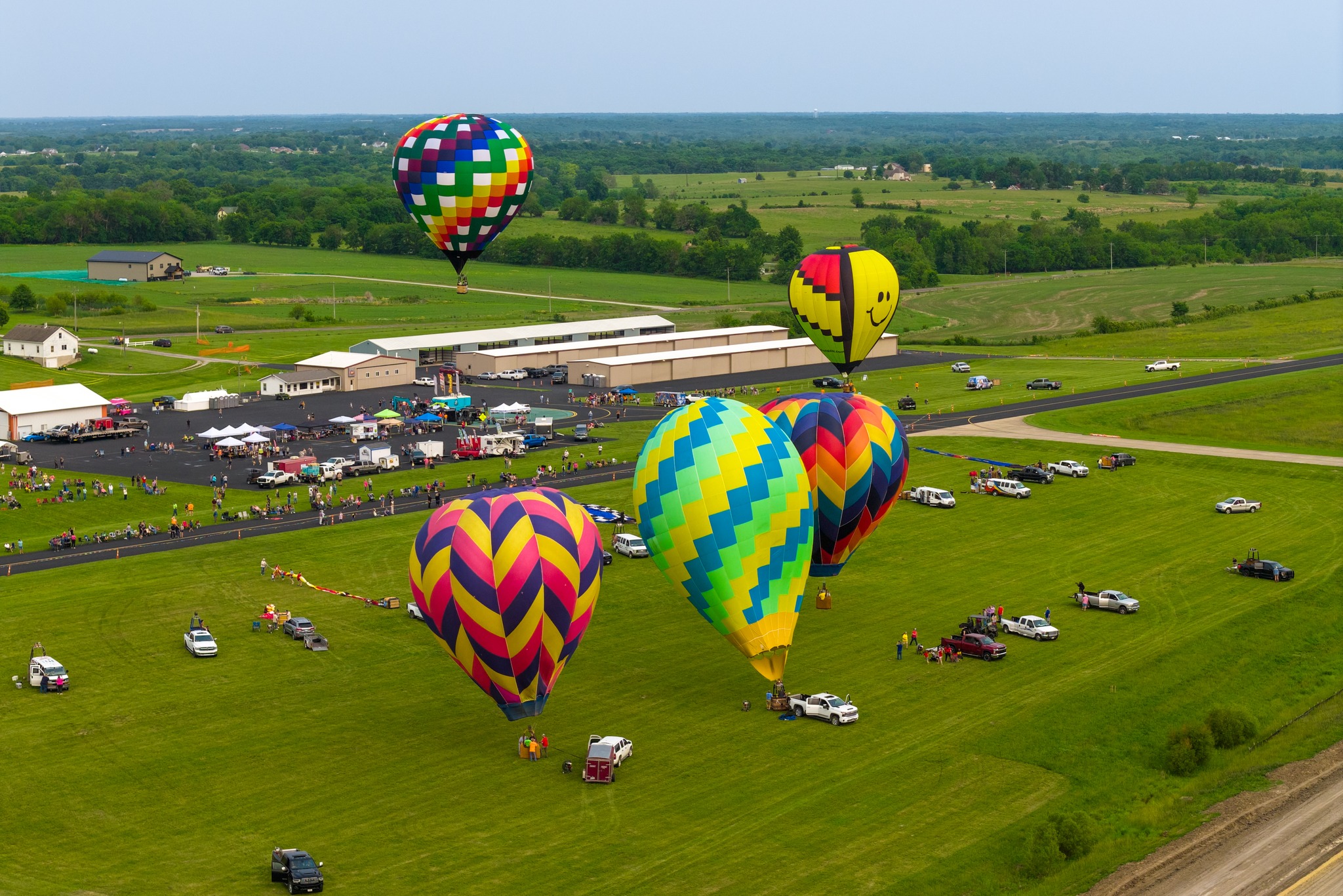 Events are hosted at the Cameron Memorial Airport. Arrive by 6:00 AM for the most dramatic sunrise ascensions across the Missouri landscape. Balloon flights are weather dependent and ONLY take place at approx 6am and 6pm. Launch sites are dependent upon wind direction and target location.